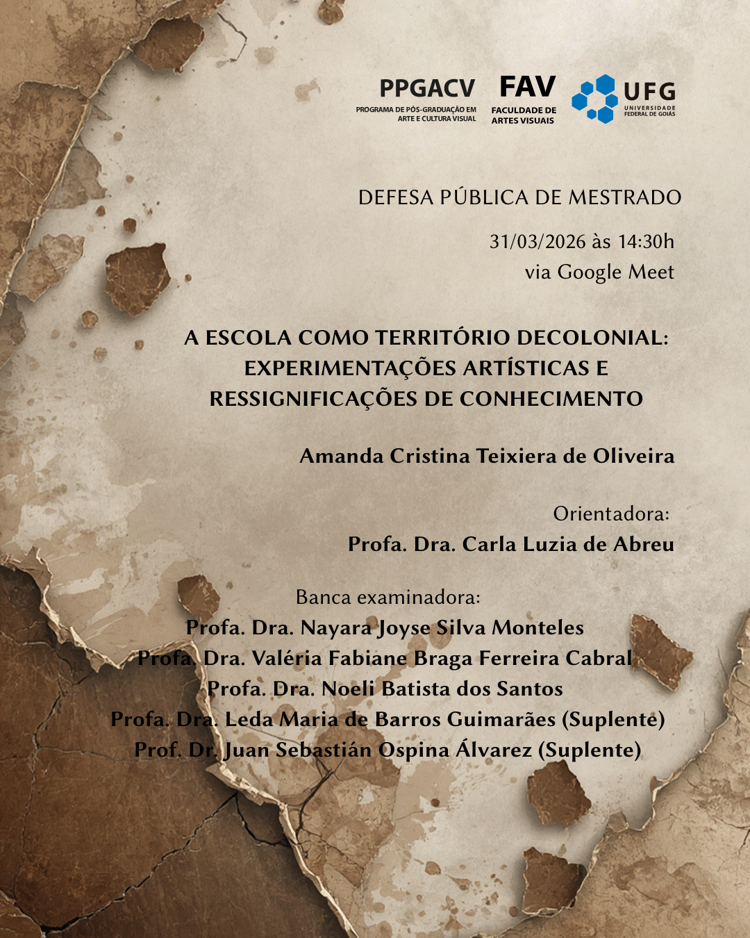 Defesa de Mestrado de Amanda Cristina Teixiera de Oliveira 31/03/26 às 14h30 Categorias: Notícias Noticias Listar Todas Voltar